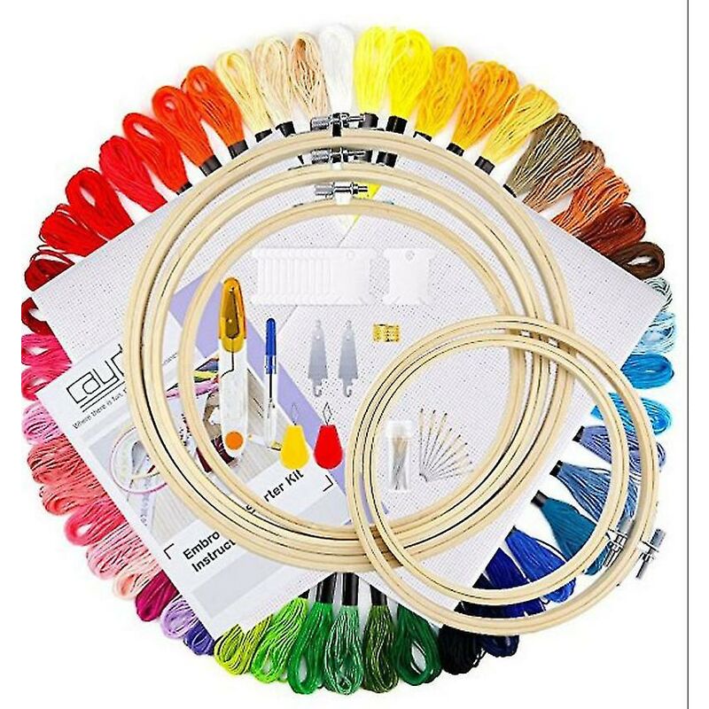 Gamma completa di kit di base per ricamo: 5 telai per ricamo in bambù, 100 fili per ricamo a colori e accessori Accessorio pratico: le penne solubili in acqua sono adatte per segnare o dipingere sul tessuto da ricamo;
