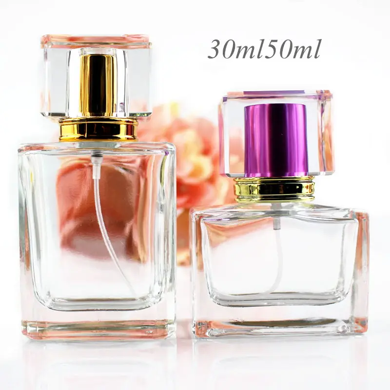 Print Logo 1PC High Quality 30ml/50ml Square Glass Perfume Bottle Clear Spray Bottle Empty Fragrance Packaging Bottle Refillable