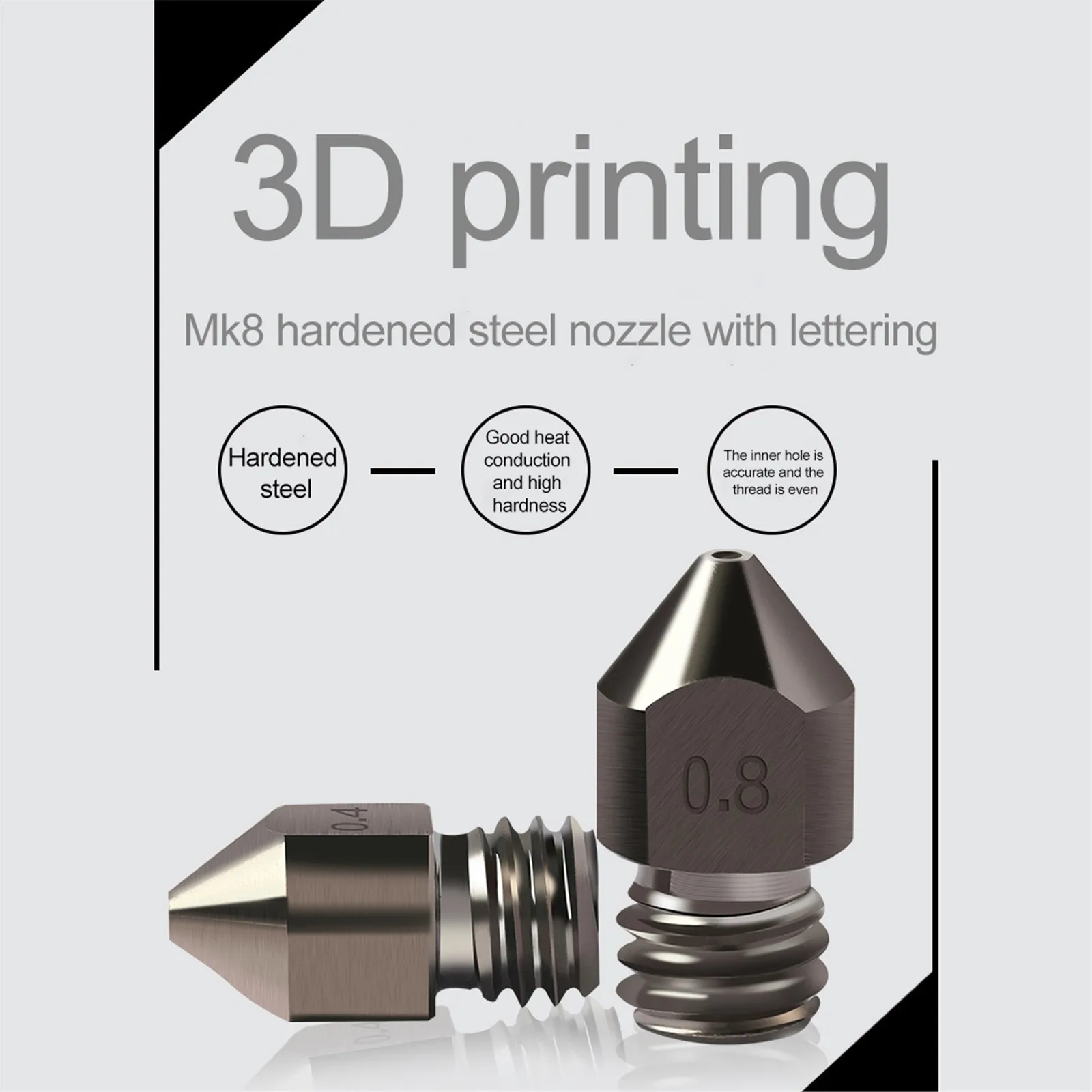 3PC 3D Printer Hardened Steel Nozzle 1.75 Consumable 0.4mm Mk8 Durable Nozzle Printer Accessory Nozzle