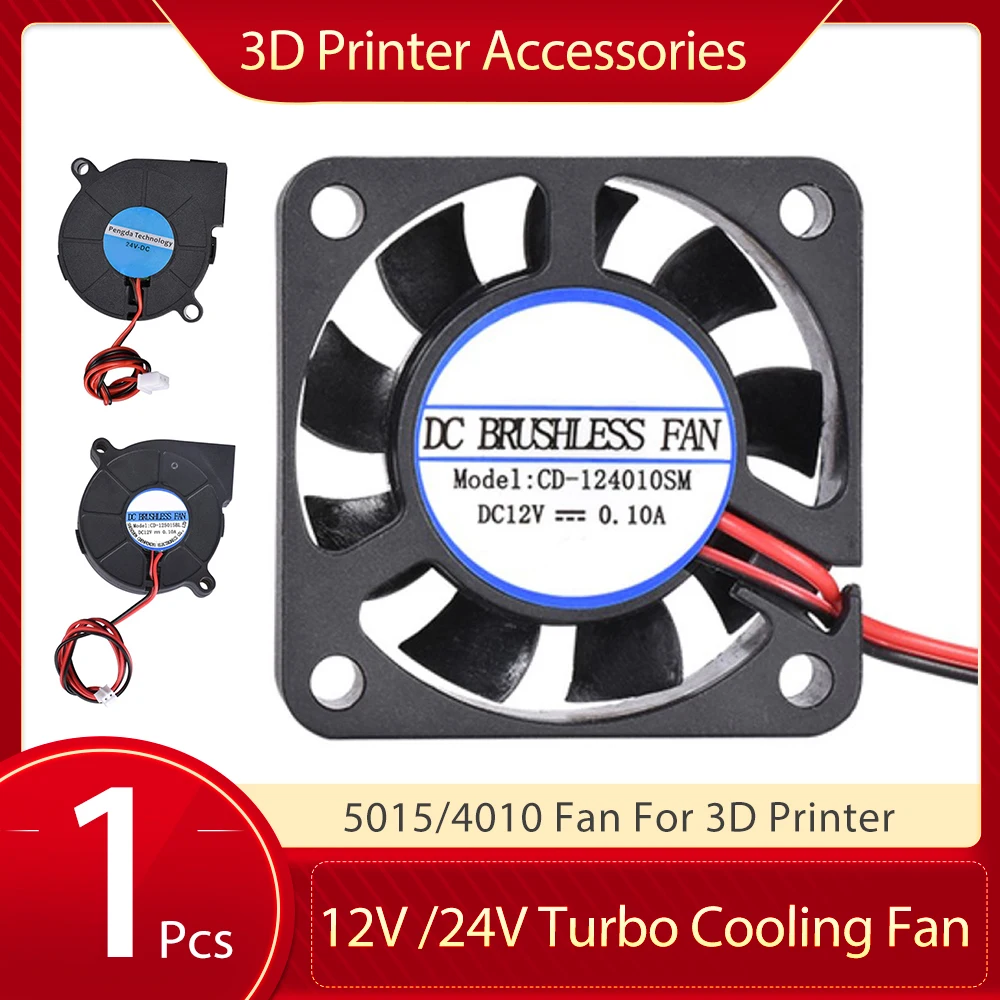3D Printer Parts 4010 5015 Blower Fan 12V 24V 0.1A /0.15A Turbo Cooling Fan Plastic Brushless DC Cooler For Extruder Accessories