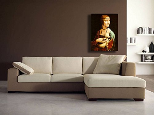 Printerland.it Quadro LEONARDO DA VINCI Dama con l'ermellino - RIPRODUZIONE STAMPA SU TELA Quadri Moderni Moderno Arte Astratto Cucina Soggiorno Camera da letto (40x50 cm)