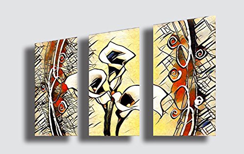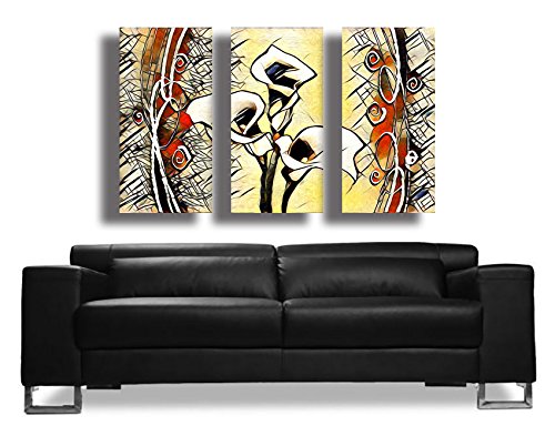 Printerland.it Quadro Moderno FIORI Etnico TULIPANI Astratto Abstract Fiore Cucina Soggiorno Camera da letto Quadri Moderni Stampa su Tela Canvas (100x150 cm(3pz 50x100))