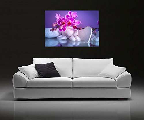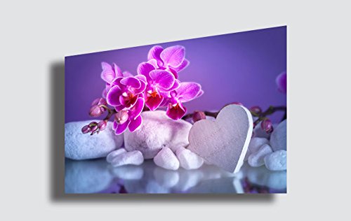 Printerland.it Quadro Moderno FIORI ORCHIDEA FUCSIA Amore Cuore Love Pietre Zen Estetica Fiore Cucina Soggiorno Camera da letto Quadri Moderni Stampa Tela Canvas (70x100 cm)