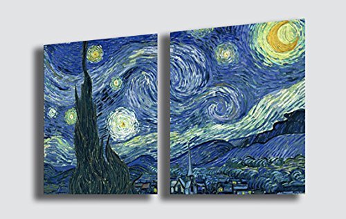 Printerland.it Quadro Notte stellata VINCENT VAN GOGH - RIPRODUZIONE STAMPA SU TELA Quadri Moderni Arte Moderno Astratto Cucina Soggiorno Camera da letto 70x100 cm (2pz 50x70)