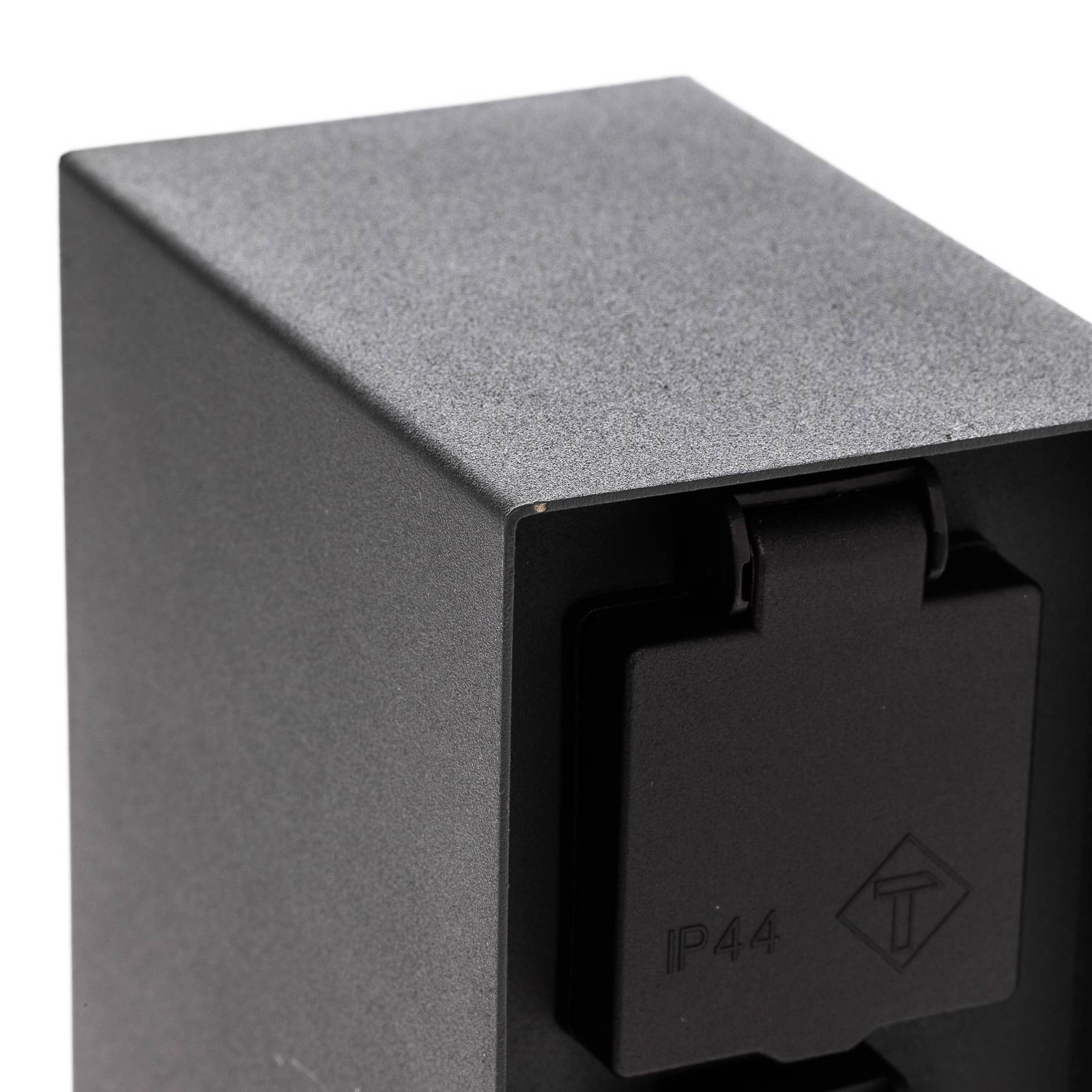 Colonna portaprese in ferro Voicu - un pratico complemento per l'area esternaUna colonna portaprese come Voicu è ideale per il funzionamento adeguato dei dispositivi tecnici all'esterno. Questo pratico compagno per il giardino o la terrazza è realizzato in ferro e ha un corpo angolare. Offre tre prese Schuko alle quali è possibile collegare, ad esempio, una lampada da tavolo o una lampada da terra. Grazie alla classe di protezione IP44, Voicu è protetto dagli spruzzi d'acqua e il suo design semplice si integra perfettamente nell'ambiente davanti alla porta di casa. La colonna di prese Voicu si controlla tramite l'app Tuya, disponibile per Android e iOS.- max. 16A