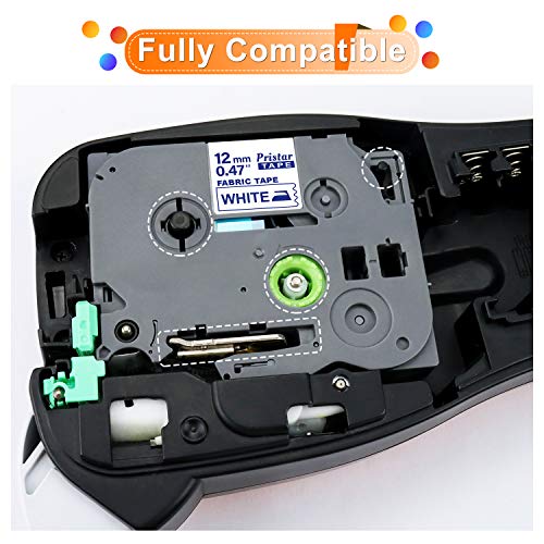 4x Pristar 12mm Compatibile Nastro in Tessuto per Brother TZe-FA3 TZeFA3 TZ-FA3 Tz Textile Blu su Bianco Iron On Fabric Nastro per Brother PTD210 H100LB P300BT 1000 H107B H110 E110 H100 D600 D400 H105