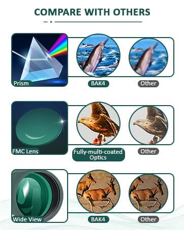 【Nuovo Treppiede Stabile】 Pristar monocoli utilizzano il prisma BAK4 per eliminare lo sfasamento, l'obiettivo oculare da 22 mm aggiornato e l'obiettivo da 50 mm rendono il campo visivo più chiaro e luminoso e dotato di lenti multistrato FMC per migliorare la riproduzione e la nitidezza dei colori. Più grande è il multiplo, maggiore è il jitter. Per una migliore esperienza, si consiglia di iniziare con un multiplo piccolo di 8-12, quindi allargare lentamente il multiplo.