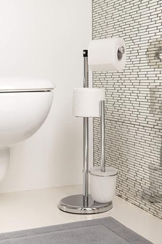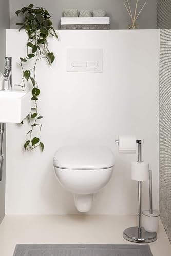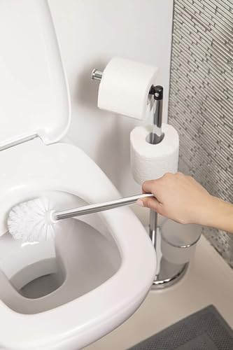 Design ordinato e salvaspazio con spazzola integrata per il WC, può contenere fino a 2 rotoli di carta igienica (2,5 cm di uso e 2,5 cm di stoccaggio)