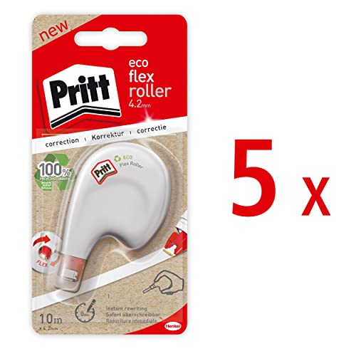 Pritt Correttore a rullo Eco Flex, applicazione laterale, immediatamente sovrascrittibile, lunghezza nastro 10 m, larghezza banda 4,2 mm, set risparmio con 5 rulli, 9H PRKEB VS