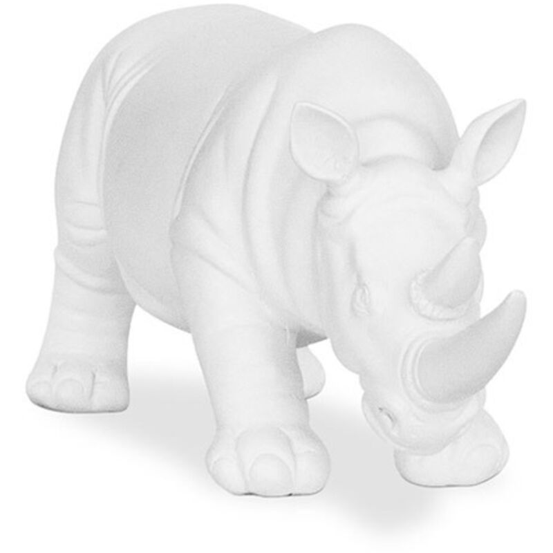 Decora un tavolo o una mensola con questa bellissimafigura con la forma di un rinoceronte. Fatto interamente di resina bianca, questo rinoceronte darà al tuo arredo interno un aspetto selvaggiamente elegante. Dimensioni: 36 cm x 11 cm x 15 cm (L x l x A)