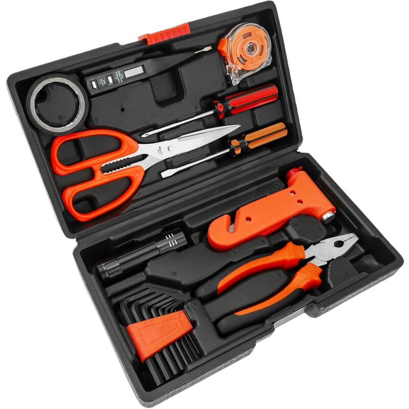 Custodia compatta che incorpora 10 strumenti di alta qualità per l'uso in fai da te, riparazioni, officine, case, ecc. La valigetta ha tutti gli scomparti per riporre facilmente ogni attrezzo e trasportare il kit senza difficoltà. Caratteristiche del prodotto: CARATTERISTICHE: La valigetta incorpora gli strumenti di base per risolvere un'emergenza in qualsiasi tipo di installazione o riparazione. Sono inclusi 10 pezzi neri e arancioni per l'uso nel fai-da-te, a casa o in officina. Valigetta con maniglia per un facile trasporto. DESIGN: consente l'incorporazione di un gran numero di utensili in un unico pezzo grazie alla custodia. Design imbottito per garantire la sicurezza e il buono stato di ogni pezzo. Maniglia con spostamento laterale arancione per garantire il fissaggio della custodia e impedirne l'apertura. CONVENIENTE: comprime tutti gli strumenti necessari in un unico pezzo per una facile trasportabilità. Strumenti di base per situazioni che richiedono riparazione