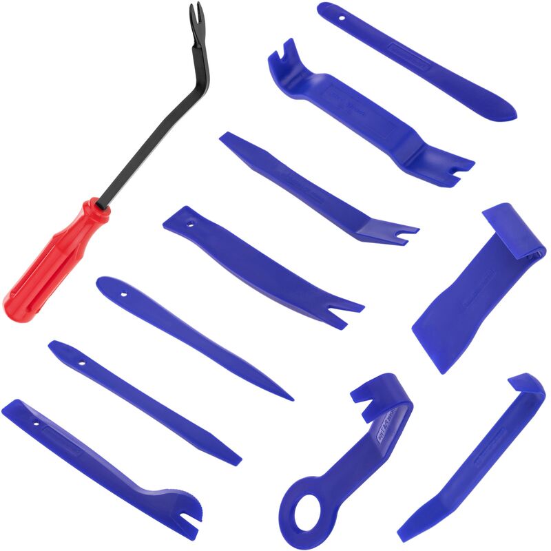 Con il kit di attrezzi per la rimozione del rivestimento automobilistico puoi montare e smontare diverse parti del veicolo per eseguire riparazioni o sostituzioni di parti danneggiate o vecchie. Ideale per porte, finestre, cruscotti, apparecchiature radio, schermi LCD che offrono sia video che audio. Consigliato per l'utilizzo professionale in officine meccaniche, officine di verniciatura o tappezzeria, ma anche per l'utilizzo da parte di privati che desiderano effettuare riparazioni o sostituzioni. Caratteristiche del prodotto KIT: questo kit di attrezzi è progettato per eseguire qualsiasi montaggio o smontaggio del rivestimento dell'auto. Il kit comprende un set di 12 attrezzi con diverse dimensioni e forme che si adattano ai design di ogni veicolo. È ideale ad esempio per porte, finestre, cruscotti, apparecchiature radio, schermi LCD che offrono video, ecc. Compatibile con la maggior parte delle marche di veicoli sul mercato. STRUMENTI - Questo kit include un totale di 12