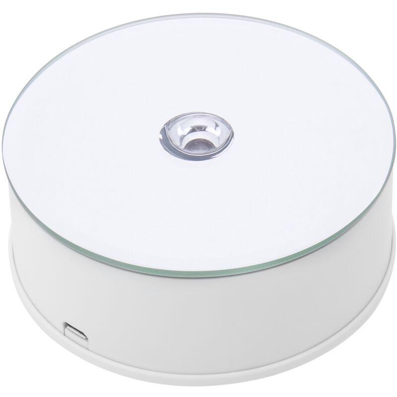 Base rotante che ruota in modo fluido e costante, il che la rende ideale per fotografare oggetti o strutture 3D, come mettere questo accessorio nella finestra con l'oggetto che si desidera visualizzare Caratteristiche del prodotto DESIGN: Base rotante motorizzata, ha anche una superficie specchiata sulla parte superiore che riflette gli oggetti che si trovano sopra e ha una luce LED sulla parte della base CARATTERISTICHE: Piattaforma rotante, che supporta 1,5 kg, incorpora un sistema di frizione che consente la frenata e l'accelerazione;