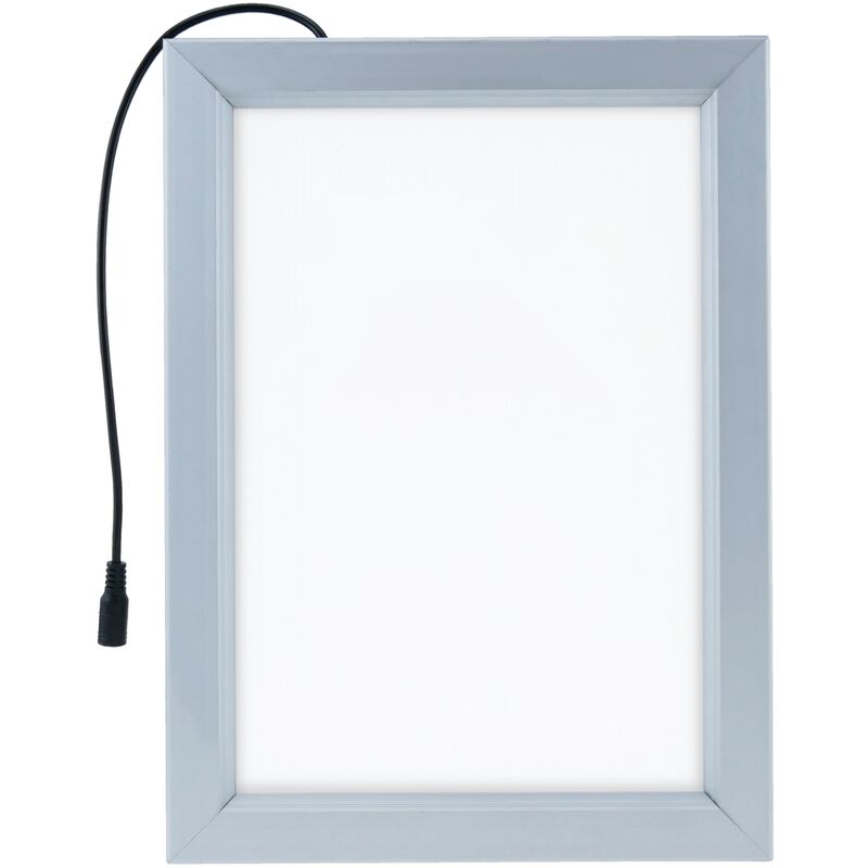 Cornice in alluminio a doppia faccia di dimensioni A2 illuminata da luci LED bianche di alta qualità a bassissima potenza distribuite uniformemente sul retro dell'area visibile su entrambi i lati. È formato da un bordo argentato e al centro puoi mettere tutti i tipi di poster trasparenti o traslucidi. Grazie al suo sistema bifacciale, è facile cambiare i poster in modo indipendente secondo necessità. Caratteristiche del prodotto: CARATTERISTICHE: La possibilità di cambiare l'oggetto in esposizione costantemente e innumerevoli volte su entrambi i lati grazie al suo facile sistema di montaggio permette di utilizzare il dipinto in vari modi secondo le proprie preferenze su ogni lato in modo indipendente. IDEALE: Per illuminare qualsiasi tipo di poster, pubblicità o segnaletica traslucida di dimensioni A2 su entrambi i lati contemporaneamente. SPECIFICHE TECNICHE: Robusto telaio in metallo alluminio argento protetto da una lastra trasparente spessa 1 mm. DESIGN: progettato per mostrare