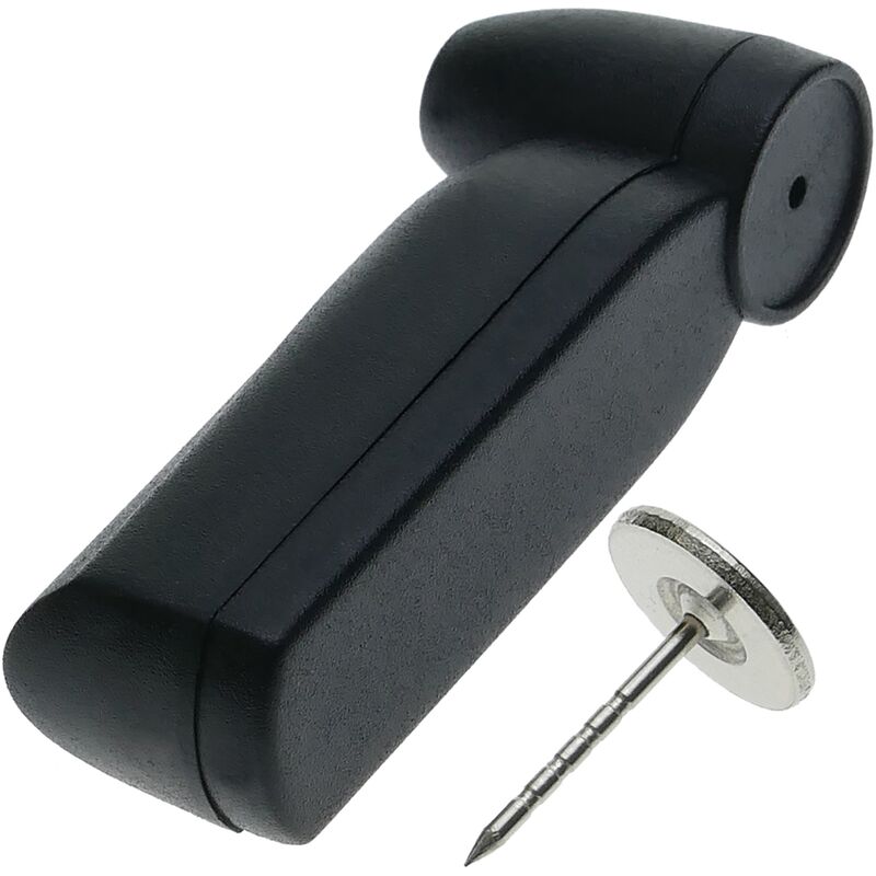 Targhetta rigida riutilizzabile con impugnatura nera dotata di meccanismo di chiusura magnetica. Sensore di sicurezza discreto per indumenti difficili da togliere. Metodo di protezione comunemente utilizzato in supermercati, centri commerciali, negozi di abbigliamento, negozi di scarpe, negozi di borse, ecc. poiché non danneggia vestiti o altri oggetti. Caratteristiche del prodotto: COMPATIBILITÀ: Dispositivo compatibile con il sistema antifurto EAS RF a 8,2 MHz. CARATTERISTICHE: Efficiente antifurto per prodotti tessili che racchiude al suo interno un sistema magnetico rilevabile dagli archi antifurto quando si avvicinano alla sua area di azione. Grazie al suo sistema riutilizzabile può essere utilizzato innumerevoli volte. DESIGN: custodia compatta, elegante e piccola in nero. Grazie al suo aspetto poco appariscente, agisce efficacemente fornendo un sistema di protezione discreto e semplice. Etichetta resistente agli urti e alla deformazione, include una maniglia per una presa