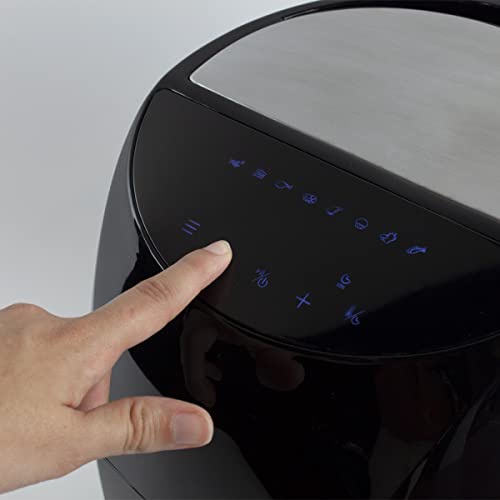 Friggitrici ad aria con touch screen LED, vassoio e cestello con rivestimento antiaderente.