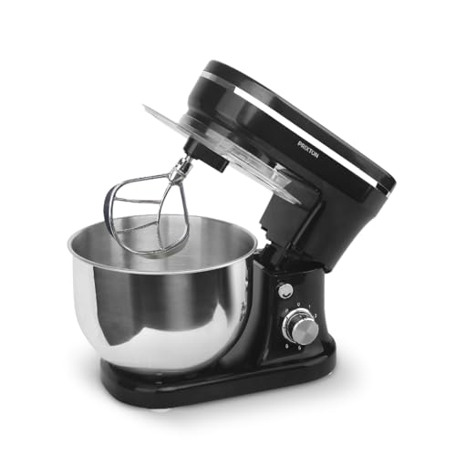 PRIXTON - Frullatore Impastatrice KR200 - Potenza 1200 Watt - 6 velocità - Ciotola in Acciaio Inossidabile 5 litri - 3 accessori - Colore Nero