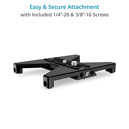 Posizionare la fotocamera in modo più sicuro su qualsiasi superficie piana con il supporto per piastra di base media ProAIM SnapRig, che impedisce alla fotocamera di cadere o rovesciarsi
