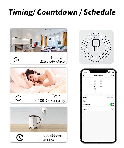 *✅Funzione di programmazione: imposta il timer e il conto alla rovescia, crea scene, puoi impostare gli orari del timer per accendere/spegnere automaticamente la luce, i ventilatori o gli elettrodomestici in base alle tue abitudini quotidiane. Ad esempio, puoi impostare le luci del corridoio in modo che si accendano quando torni a casa la sera e si spengono quando esci di casa al mattino.