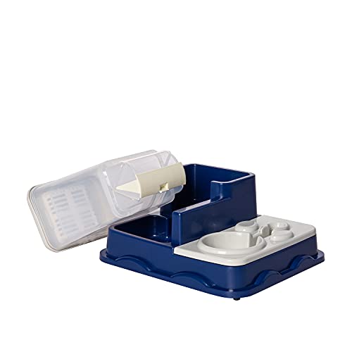 Dispenser automatico di acqua e crocchette: capacità 5 l per il cibo e 1,5 l per l'acqua.