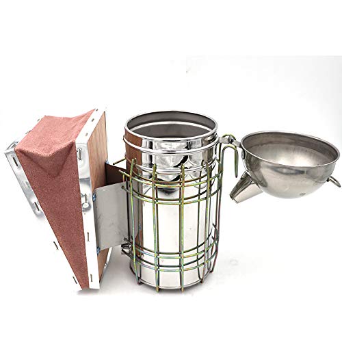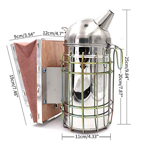 PROBEEALLYU Fumatore di alveari, fumatore di api dell'acciaio inossidabile con attrezzatura di apicoltura dello scudo termico, alveare Fumatore (Il giro)