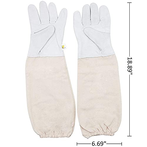 Probeeallyu - Guanti da apicoltura in pelle di capra con maniche spesse in cotone ventilato, guanti da apicoltura (XX-Large)