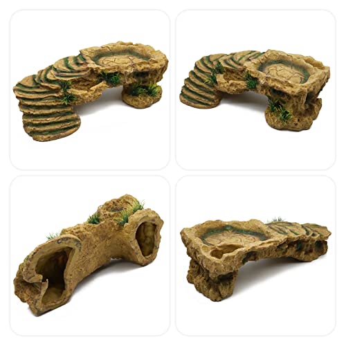 Tartaruga Basking Piattaforma Rettile Simulato Rock Habitat Terrarium Hideout Tartaruga Resina Nascondere Roccia Nascondere Ornamento per Rane, Lucertole Ragni Pesce Anfibi Acquario Decorare