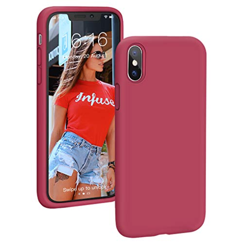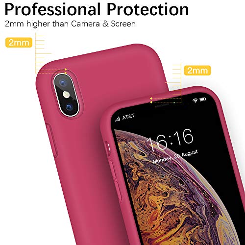 ProBien Custodia Antiurto, Protezione Completa in Silicone Liquido con Pellicola Salvaschermo in Vetro temperato per iPhone X/iPhone XS (5,8") (Rosso Rosato.)