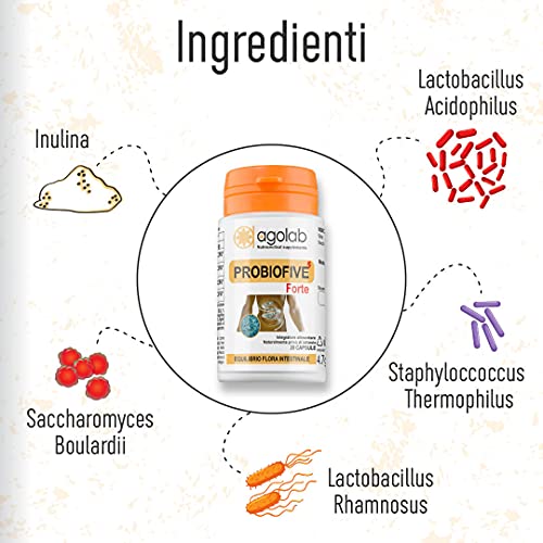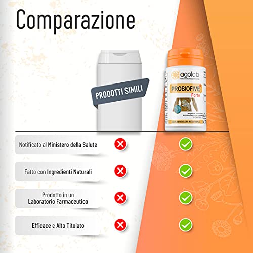 5 MILIARDI DI PROBIOTICI: AgoLab ha scoperto una formulazione che ti consentirà di beneficiare al 100% dei 5 miliardi di fermenti lattici probiotici attivi, perchè arrivano intatti nell'intestino e danno tutti i benefici di cui l'organismo ha bisogno