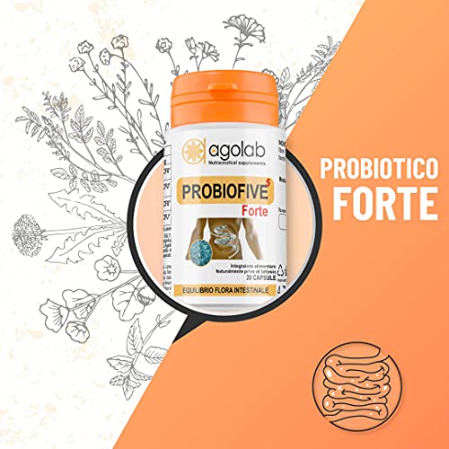 PROBIOFIVE Forte - Integratore Probiotico e Prebiotico ad Alto Assorbimento, 5 Miliardi di Fermenti Lattici Attivi per il Benessere del Tuo Intestino - 20 Capsule