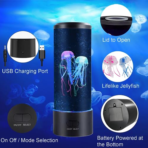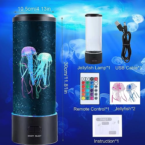 Probuk Lampada Meduse,30cm Jellyfish Lampada d'atmosfera LED Lava Colorata con Telecomando e 4 Modalità,Telecomandata USB/Batteria Alimentata Luce Notturna per Office Domestico Stanza Bambini Decor