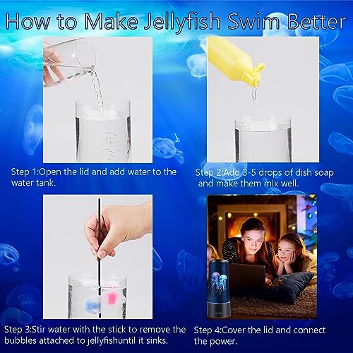 [DESIGN A BASSO RUMORE]: La luce medusa è azionata da un motore a bassa rumorosità, è possibile regolare il colore premendo il pulsante della luce, il movimento delle 2 meduse nella vasca è accompagnato dal cambiamento di colore della luce, creando una bella atmosfera pacifica e rilassante delle profondità marine, contribuendo a ridurre lo stress e l'ansia.