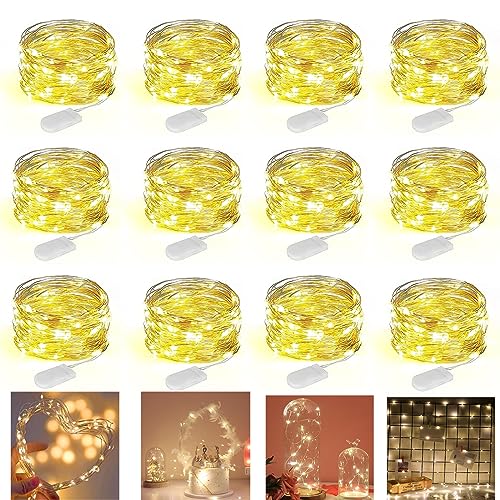 Probuk 12 Pezzi Led Stringa Luci a Batteria Ghirlanda Luminosa Lucine 2M 20LEDs Bianco Caldo, Mini Lampada a Fili di Rame Impermeabile per Esterni, Natale, Matrimonio, Compleanno, Festa, Camera