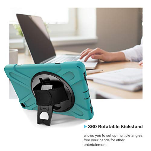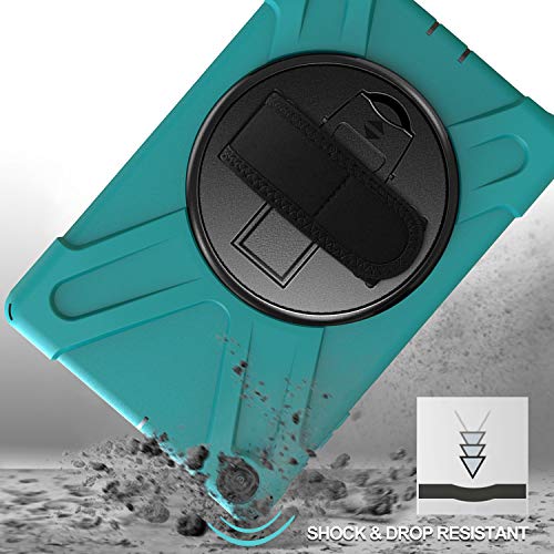 ProCase Custodia per Galaxy Tab A 10.1 2019 SM-T510/T515/T517, Rugged Custodia Protettiva Antiurto Rotante con Cinturino a Mano Kickstand Tracolla -Teal