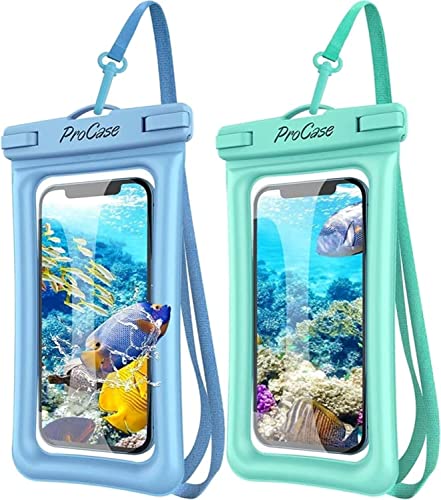 Procase 2 custodie galleggianti impermeabili per iPhone 14 13 12 11 Pro Max/Galaxy A13 A53 S22 S21 e altri smartphone, colore: blu/verde
