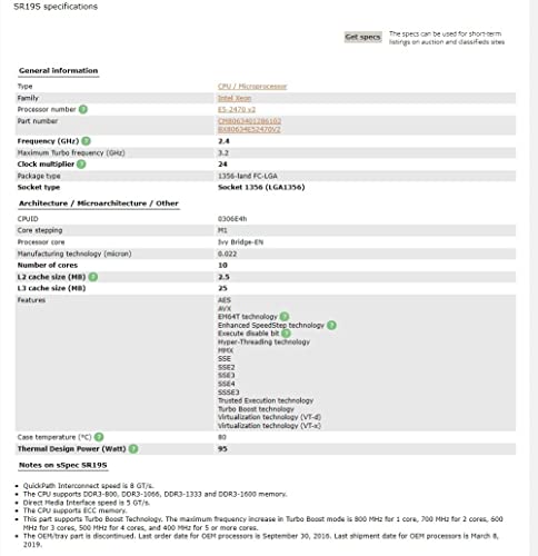 Processore Intel Xeon E5 2470v2 E5 2470 V2 2.4GHz Ten-Core Twenty-Thread 25M 95W LGA 1356 SENZA VENTOLA