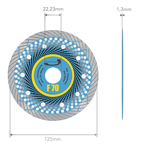 PRODIAMANT Disco da taglio diamantato professionale in gres porcellanato F70, extra sottile, 125 mm x 22,2 mm, per tagliare a secco fino a 3 cm