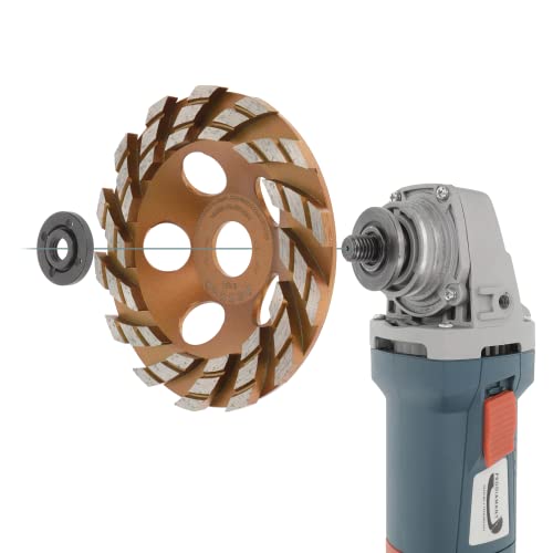 Disco abrasivo da 125 mm con foro da 22,23 mm, segmento speciale scanalato per una migliore dissipazione della polvere e del calore, altezza di costruzione 23 mm con aperture di aspirazione extra grandi, altezza del segmento 5 mm, adatto per smerigliatrici angolari, smerigliatrici per cemento, fresatrici per calcestruzzo, sistemi di levigatura a parete e levigatrice per pavimenti delle marche Bosch, Makita, Festool, Flex, Metabo, Würth, Einhell, Hitach. Milwaukei, Milwe, DeWalt e altri con mandrino filettato M14