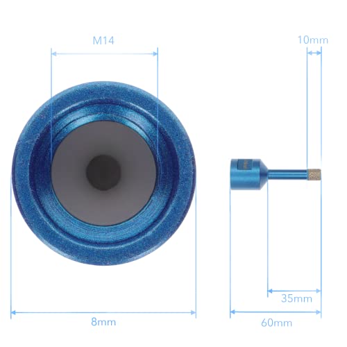 Punta per piastrelle ø 8 mm, attacco M14, punta diamantata a secco con segmento diamantato premium vacuum, rivestimento diamantato da 15 mm, lunghezza effettiva 35 mm, adatta a smerigliatrici angolari standard con mandrino M14