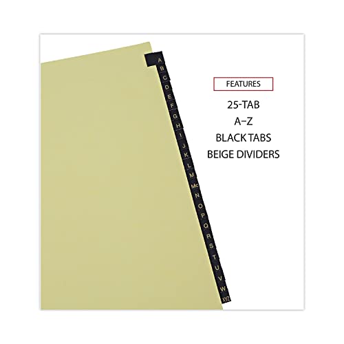 Prodotti - Divisori per separatori in mylar in similpelle, 25 targhette per alfabeto, lettere, nero / oro, set di 25 - venduto come 1 set - look in pelle per l'eleganza tradizionale.- titoli prestampati per un aspetto uniforme.- tre fori per l'usoin raccoglitori ad anelli standard .