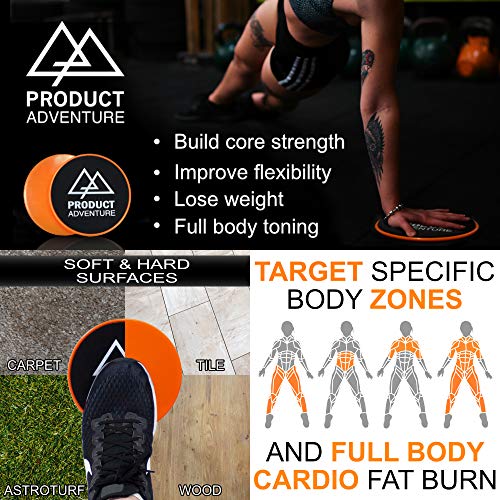Prodotto Adventure Glide dischi, Dual Core esercizio cursori, set di 2 con free e-book, video e borsa per trasporto donne e uomini ✮ ✮ ✮ ABS adatto per yoga, pilates, forza, ABS, gambe. Made by Ltd.