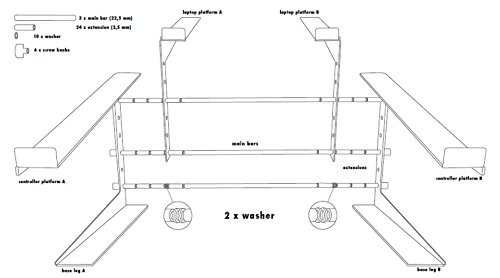 Sporgenza supporti laptop: 300mm. Larghezza supporti laptop regolabile: 225 - 427 mm. Dimensioni supporto controller: 450 x 410 mm. Dimensioni base: 450 x 340 mm. Peso: 3,80kg