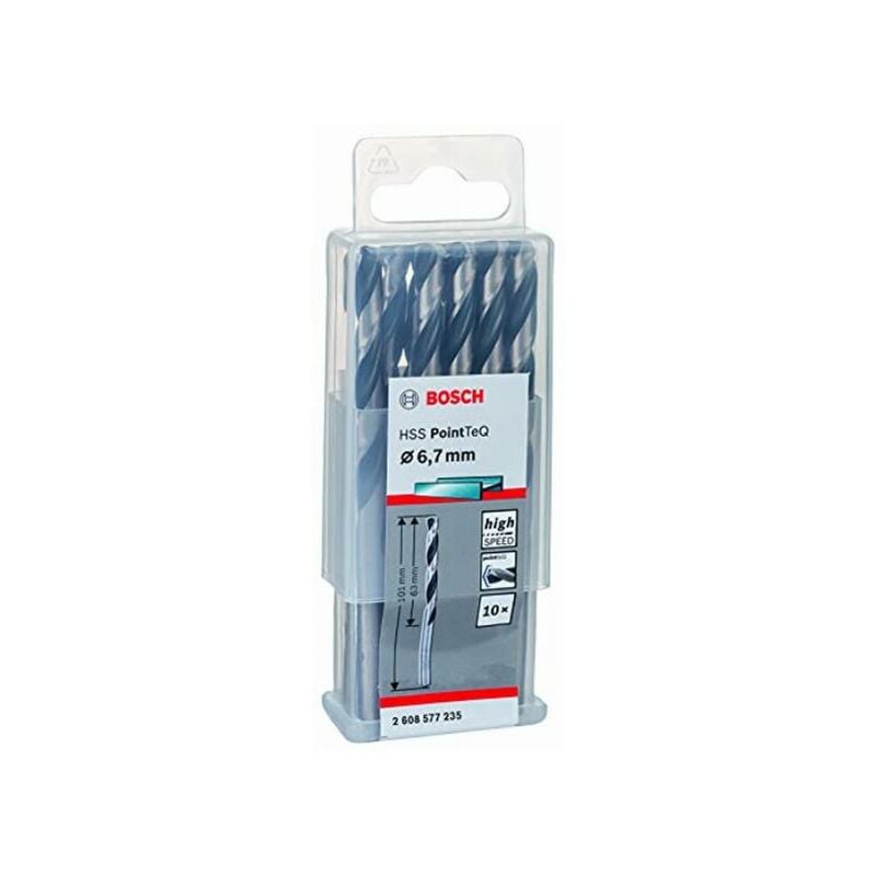 Estremamente veloce e precisa per la foratura del metallo Velocità unita a precisione sono le caratteristiche presentate alla punta per metallo HSS PointTeQ. Grazie alla punta autocentrante è possibile una foratura veloce e semplice, senza spostamenti. Grazie alla velocità di foratura aumentata viene generato un minor calore e quindi si riduce l'usura. Il tagliente della punta rimane affilato e resiste all'utilizzo continuato. È particolarmente indicata per lavorazioni in acciaio legato e non legato, metalli non ferrosi, acciaio fuso, ghisa, e plastica. Per il taglio e/o la lavorazione del metallo si consiglia il raffreddamento, ad es. mediante olio. Ciò contribuisce a una maggiore durata della punta e a una migliore lavorazione del pezzo. Il codolo circolare della punta per metallo HSS la rende utilizzabile universalmente in trapani avvitatori e foratrici da banco. Dotazione di fornitura: 10 x punta per metallo HSS PointTeQ Control Bosch Professional con codolo circolare - Ø: 6,7 mm