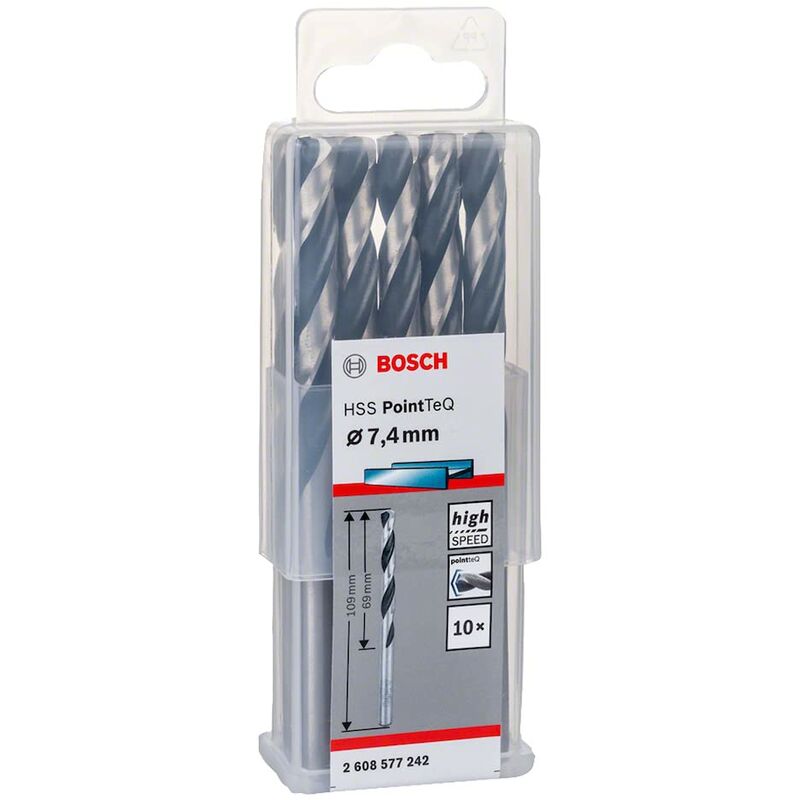 Estremamente veloce e precisa per la foratura del metallo Velocità unita a precisione sono le caratteristiche presentate alla punta per metallo HSS PointTeQ. Grazie alla punta autocentrante è possibile una foratura veloce e semplice, senza spostamenti. Grazie alla velocità di foratura aumentata viene generato un minor calore e quindi si riduce l'usura. Il tagliente della punta rimane affilato e resiste all'utilizzo continuato. È particolarmente indicata per lavorazioni in acciaio legato e non legato, metalli non ferrosi, acciaio fuso, ghisa, e plastica. Per il taglio e/o la lavorazione del metallo si consiglia il raffreddamento, ad es. mediante olio. Ciò contribuisce a una maggiore durata della punta e a una migliore lavorazione del pezzo. Il codolo circolare della punta per metallo HSS la rende utilizzabile universalmente in trapani avvitatori e foratrici da banco. Dotazione di fornitura: 10 x punta per metallo HSS PointTeQ Control Bosch Professional con codolo circolare - Ø: 7,5 mm