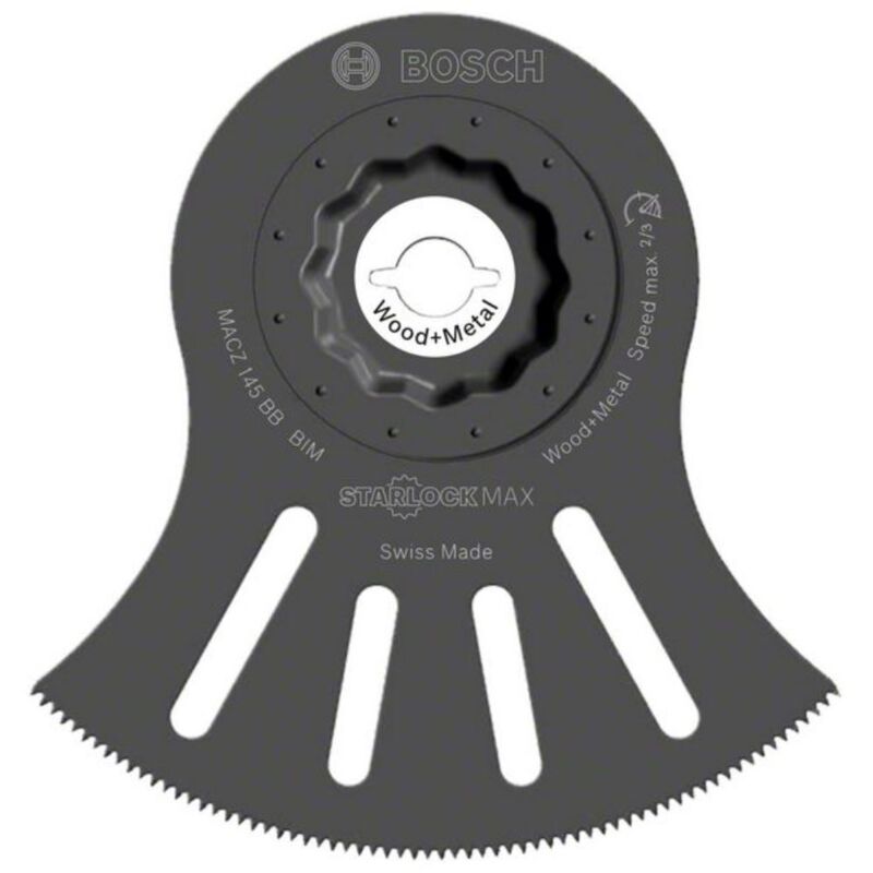 Segmento Sega Blade Macz 145 BB. Diametro particolarmente grande di 145 mm. Il segmento ha visto la lama Starlock Macz 145 BB consente tagli profondi particolarmente veloci in materiali di legno. Il foglio ha una eccezionale profondità di taglio di 50 mm e una larghezza di taglio di 100 mm. I denti acuti consentono un taglio più rapido senza tracce di calore e la grande superficie della foglia garantisce tagli diritti precisi anche ad una lunghezza grande. Con questo segmento sega la lama con i denti affilati può essere tagliato agli angoli. È ideale per segare il legno. Materiali di isolamento in legno e fibre adatti. È adatto per tutti gli strumenti multifunzione Starlock Max. Il sistema Starlock Max consente la massima profondità di taglio anche più difficile. Velocità e versatilità. Inoltre, il sistema di registrazione Starlock consente un cambio di foglia rapida in tre secondi senza tatto a foglia. Lo speciale sistema di registrazione Starlock consente la massima trasmissione di