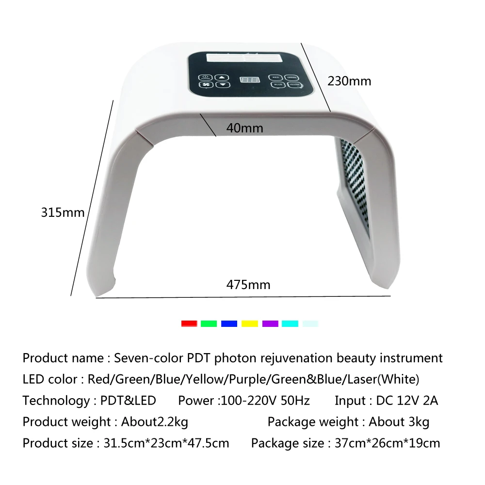 Professional Photon 7 Colors PDT Led Light LED Facial Mask Machine Acne Treatment Face Whitening Skin Rejuvenation Light Therapy