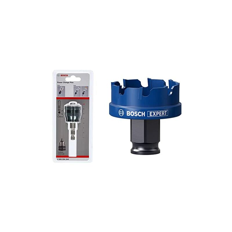 Bosch Professional 1x Power Change Plus Adapter (Bussola Esagonale da 3/8, Ø 8.7 mm) + 1x Seghe a Tazza Expert Sheet Metal (per Lamiere di Acciaio, Lamiere di Acciaio Inossidabile, Ø 35 mm)