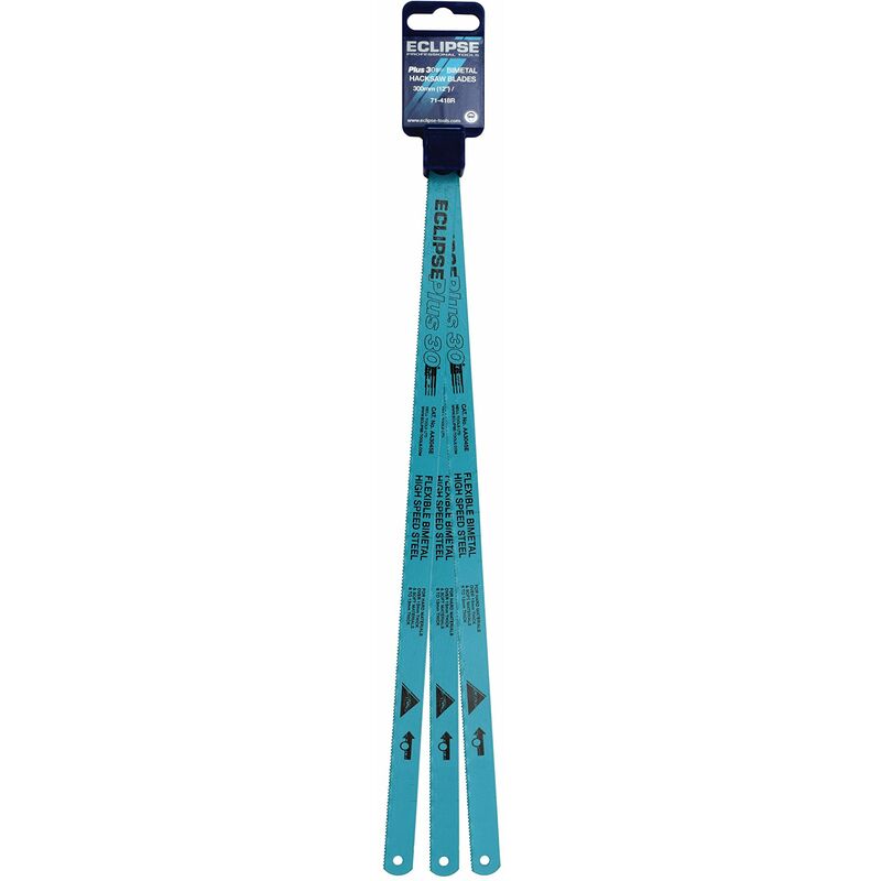 Descrizione La confezione tripla di lame bimetalliche Eclipse contiene tre lame bimetalliche Plus 30 da 300 mm (12), una da 18tpi, una da 24tpi e una da 32tpi che sono praticamente indistruttibili per il massimo rendimento di taglio, resistenza all'usura e sicurezza. L'esclusivo profilo e la curvatura dei denti della serie di lame Plus 30 produce un più veloce e aggressiva azione di taglio che richiede meno sforzo e risulta più efficiente di una lama standard. Taglia tutti i tipi di materiali compresi l'acciaio inossidabile e le leghe metalliche Garantisce il 30% in più di potenza di taglio, un primo taglio più nitido e una vita utile più lunga. Eclipse - il numero uno nel taglio dei metalli. Contenuto della confezione 1 x Confezione da tre lame per seghetto Eclipse da 18, 24 e 32tp