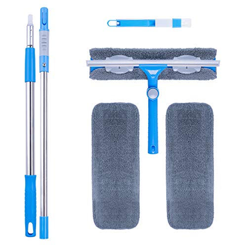 IKU professionale lungo allungabile 3-in-1 lavavetri detergente con morbido rivestimento in microfibra rimovibile e lavabile 180 ° ruotabile lavavetri & Groove spazzola per Windows/specchio/porta di vetro/auto/soffitto 57 IN Blue
