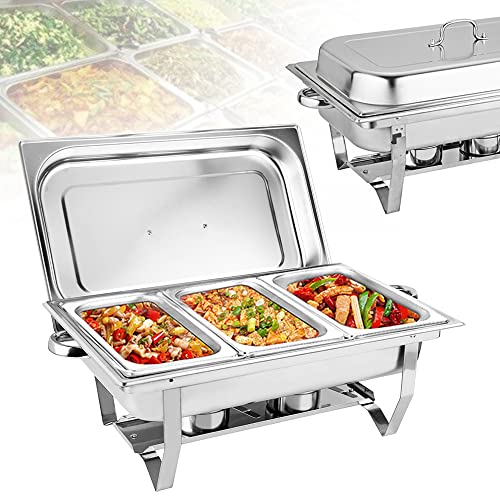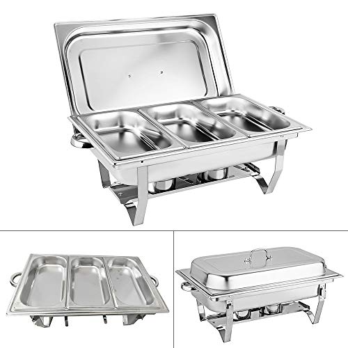 Set Professionale per Chafing Dish, Scaldavivande per Buffet Acciaio Inox 3X 9L, 52,8 x 32,5 x 9,2cm Contenitore Vassoio di Riscaldamento per Buffet Albergo Hotel Mensa Supermercato Ristorante